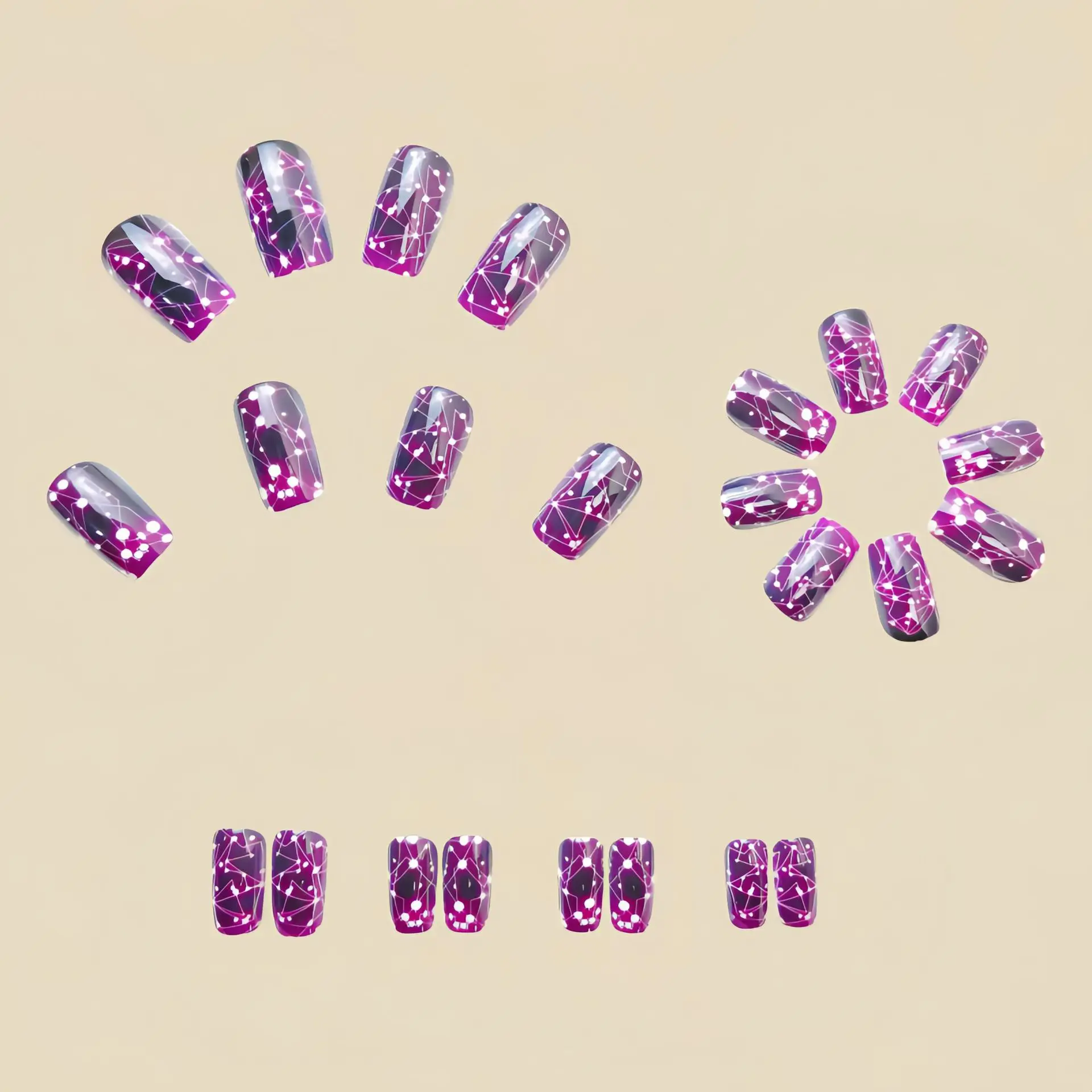 24pcs Romantic Sky Press on Nail Pink Purple Gradient Starry Sky False Nails Wearable European Square Head Fake Nails for Women